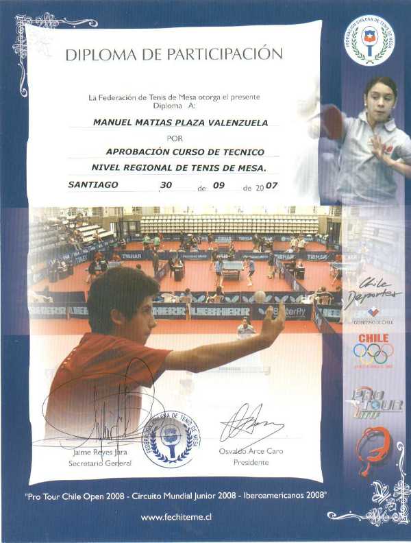 Soy profesor de Tenis de Mesa desde el año 2007, certificado como Técnico Nivel Regional en la Federación Nacional de Tenis de Mesa (FECHITEME) y con más de 11 años de experiencia en la formación de este deporte.